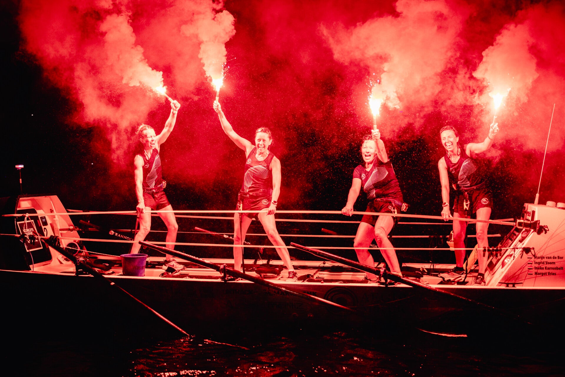 Ingrid Voorn, Margot Vries, Marije van de Bor en Ineke Karrenbelt roeiden als team Blue Atlantics de World's Toughest Row - The Atlantic 2023.