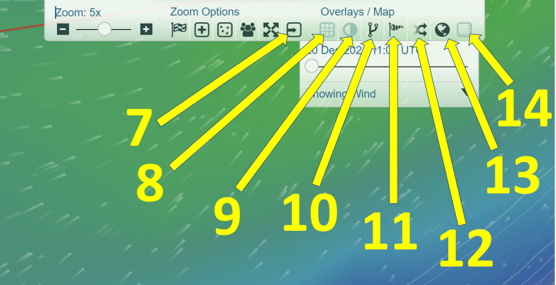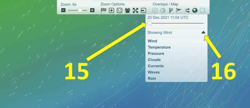 - Toggle wind data: kies uit 3 settings, Windy is de default