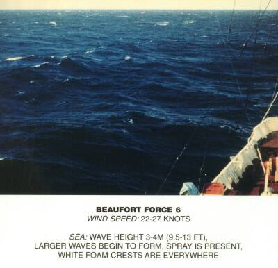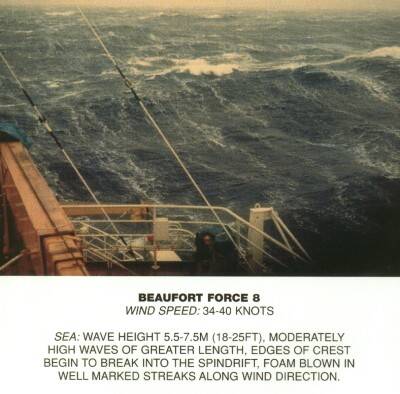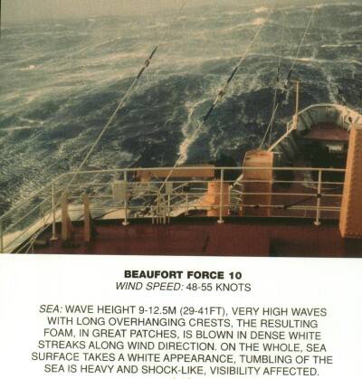 | 12 | > 63 | > 32,7 | > 117 | Hurricane | lucht is vol met verwaaid water en schuim, zee volkomen wit, vrijwel geen zicht meer | orkaan |