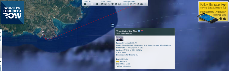 Er zijn inmiddels 18 teams gearriveerd op Antigua, allemaal live te zien via de YouTube livestream van World's Toughest Row. Voor de dames van de Blue Atlantics is het nu echt aftellen! Ze roeien hun laatste weekend op de Atlantische oceaan in, en met nog maar 144NM voor de boeg verwachten we ze maandagavond over de finish! Mel Eissens (Hands Atlantic) heeft haar boot weer ontdaan van alle aangroei en met de wind uit de goede hoek maakt me lekkere vorderingen richting Antigua. Voor haar nog ruim 4 weken te gaan.