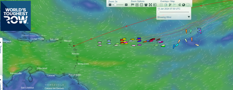 13 december 10:00 UTC: de 38 teams zijn onderweg! In de luwte van Tenerife roeien ze hun eerste zeemijlen richting de andere kant van de oceaan! De weersverwachting voor komende dagen ziet er goed uit, wind uit de juiste richting! Op YB Tracking kun je zelf tot 9 dagen vooruit de verwachting voor wind, golven, neerslag, temperatuur, luchtdruk etc zien, voor uitleg over YB Tracking klik hier >>